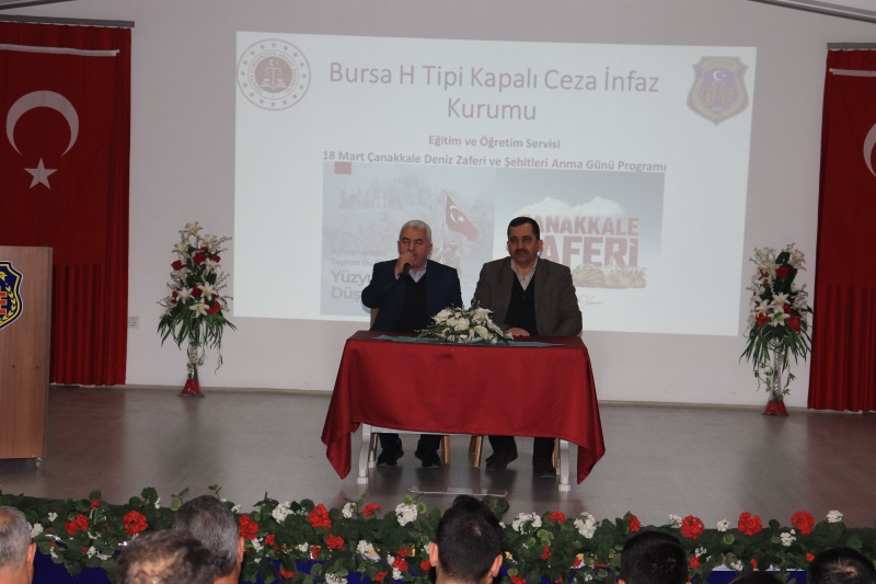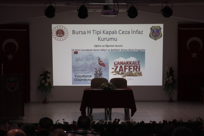 Bursa H Tipi Kapalı Ceza İnfaz Kurumunda 18 Mart Çanakkale Deniz Zaferi ve Şehitleri Anma Günü dolayısıyla anlamlı bir program gerçekleştirildi. Programa Cumhuriyet savcısı, kurum idarecileri, personel ile hükümlü ve tutuklular katılım sağladı.