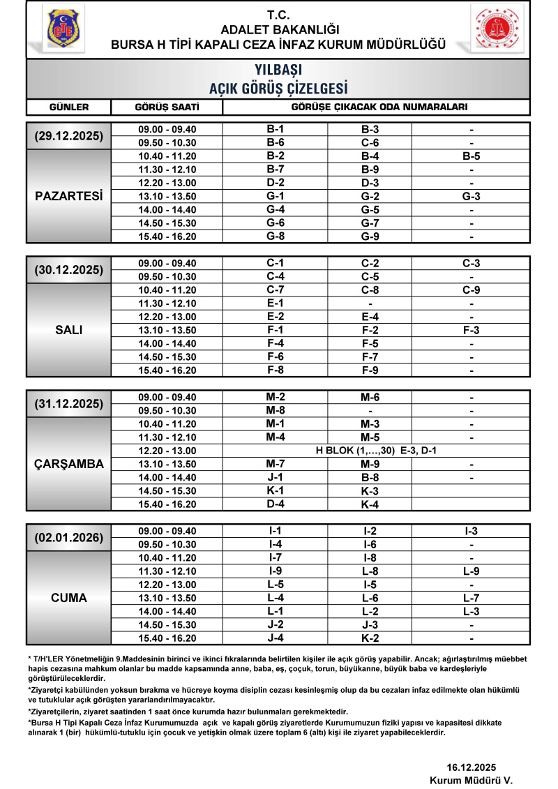 2026 Yılbaşı Açık Görüş Çizelgesi Yayınlandı